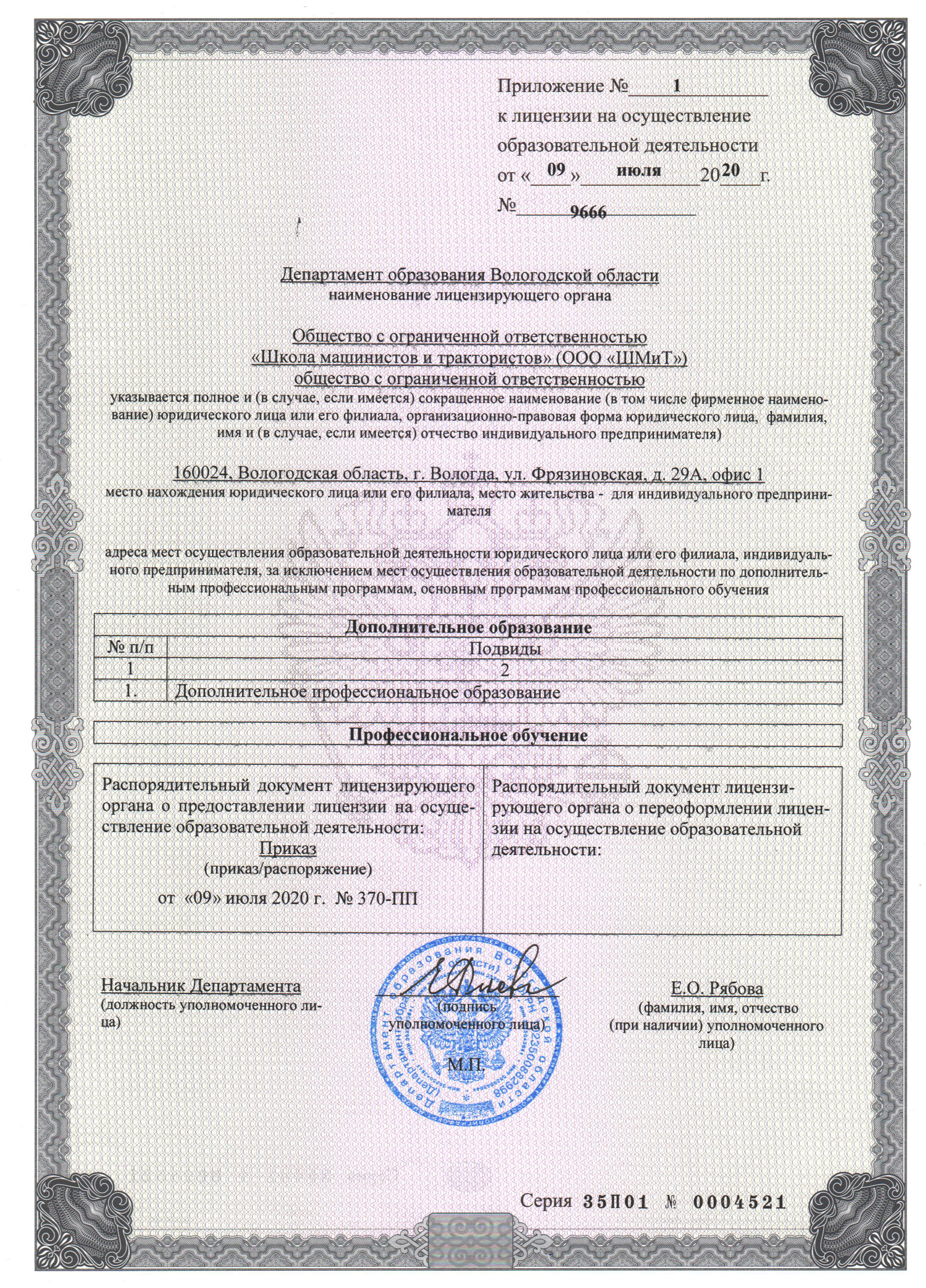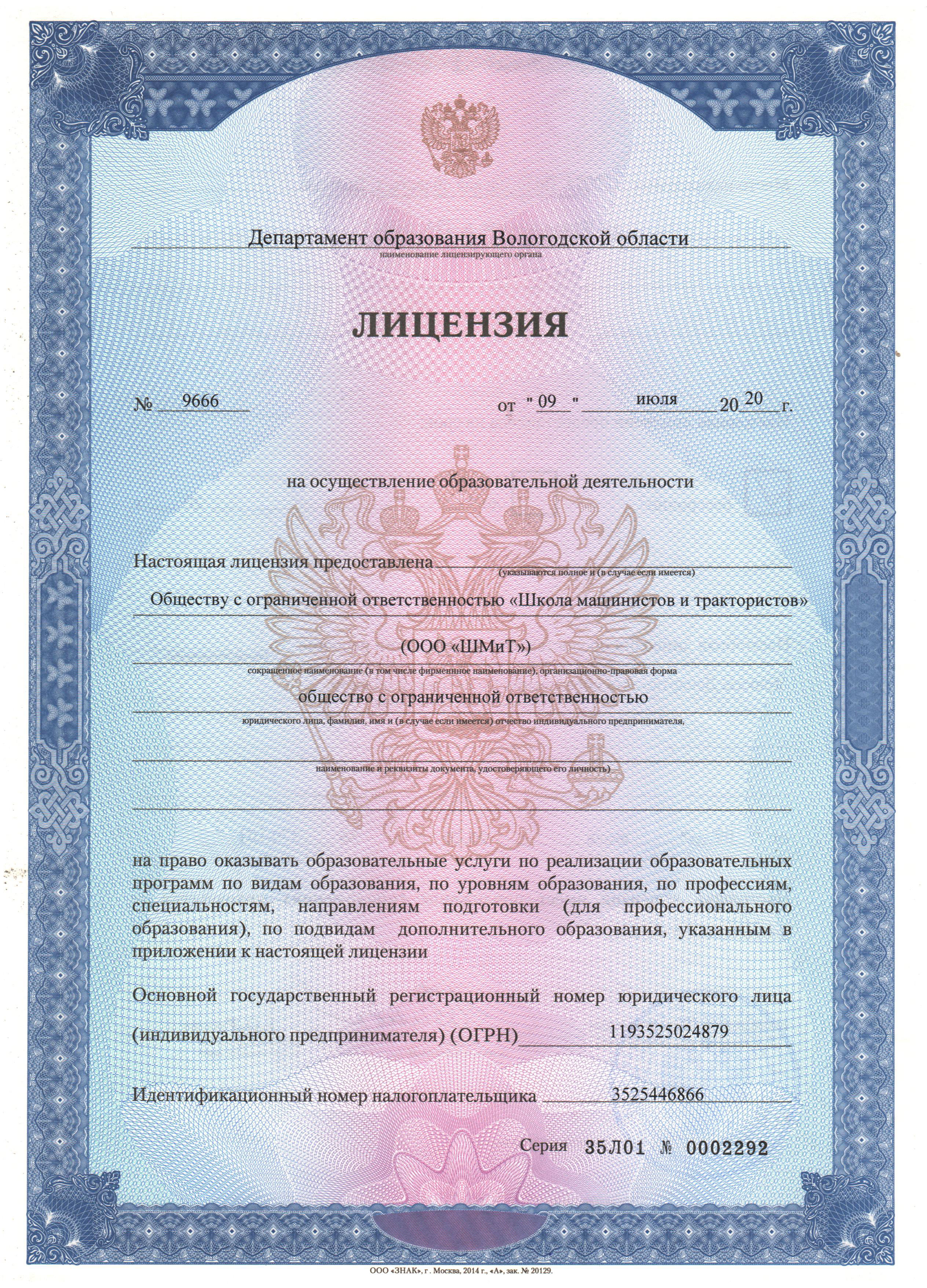 Подготовка лиц на право управления самоходными машинами осуществляется по государственным стандартам и с применением типовых программ, утверждаемых Министерством образования Российской Федерации. 8(8172)27-54-02