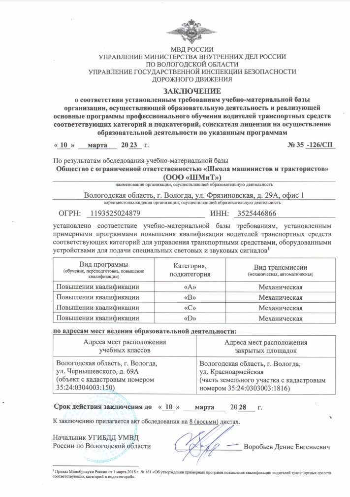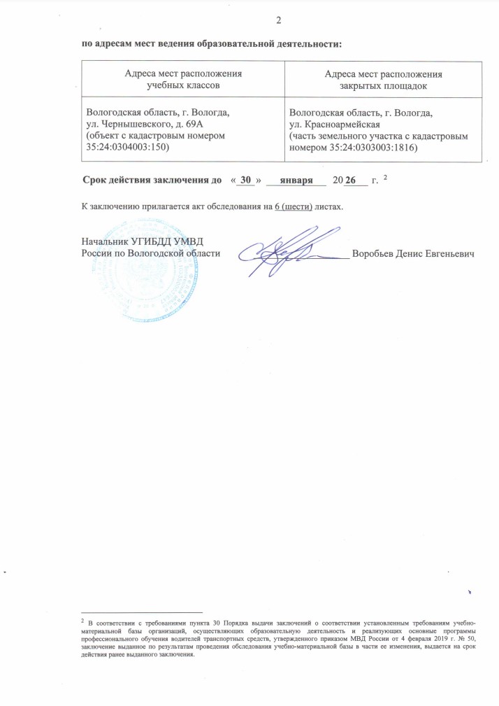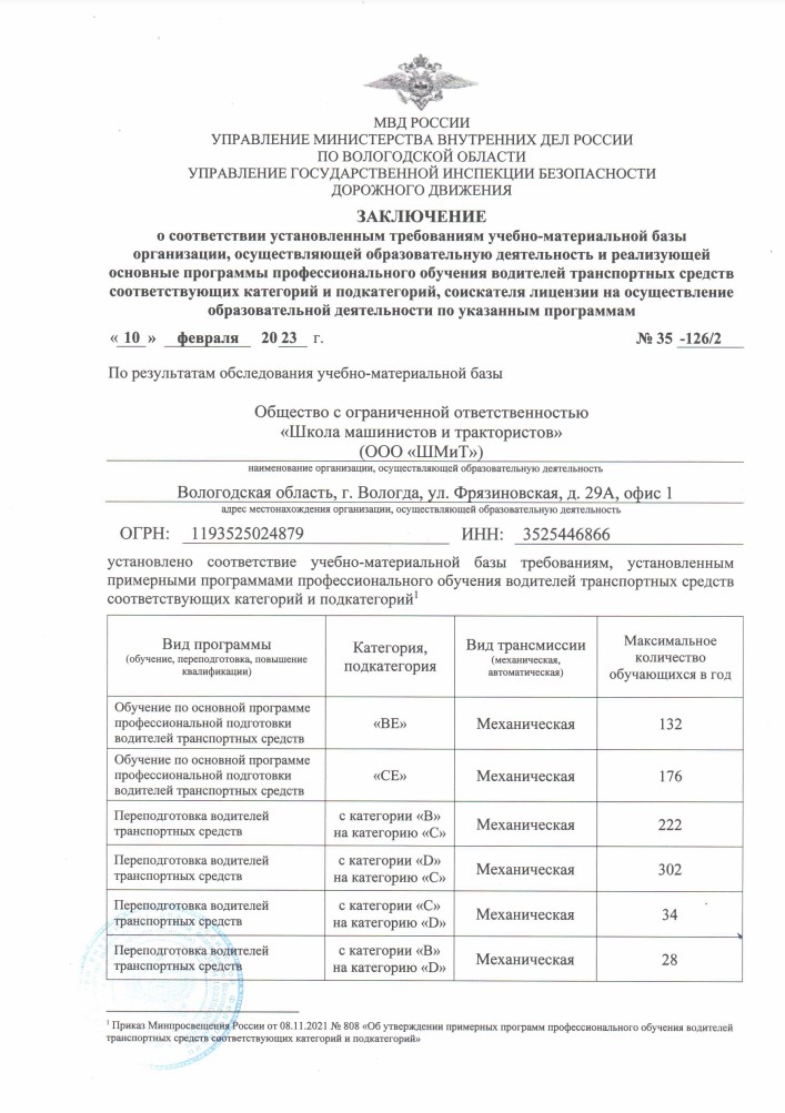 Заключения управления государственной инспекции безопасности дорожного движения УМВД России по Вологодской области (увеличение по клику)